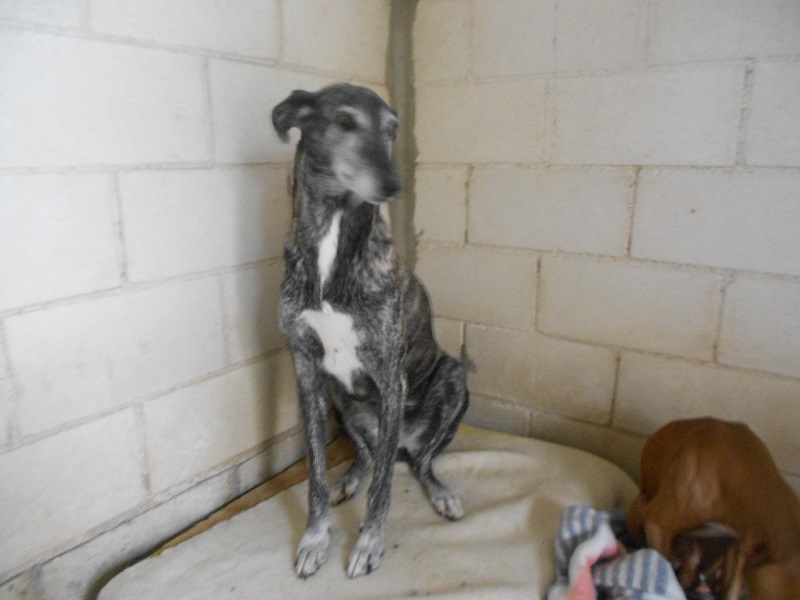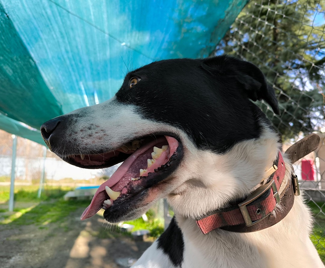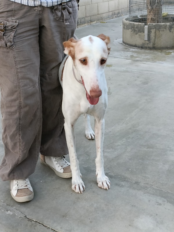 Bueno y cariñoso. necesitado de mimos y caricias, fue encontrado en malas condiciones junto con una galguita con la que compartía sus penurias. Contento desde que vino al albergue de por lo menos tener un refugio y alimento.