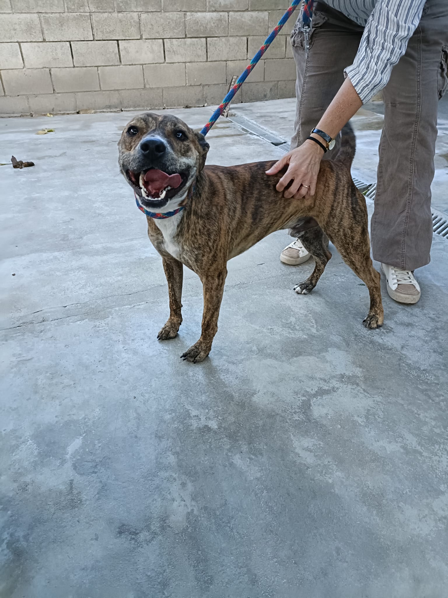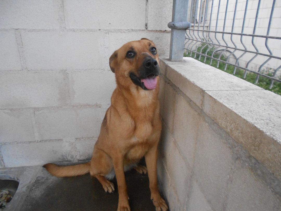 Edad: Marzo 2019 Peso: 30/35 kilos Muy alegre juguetón y activo, es algo dominante con machos, se nota que ha sido perro de finca.