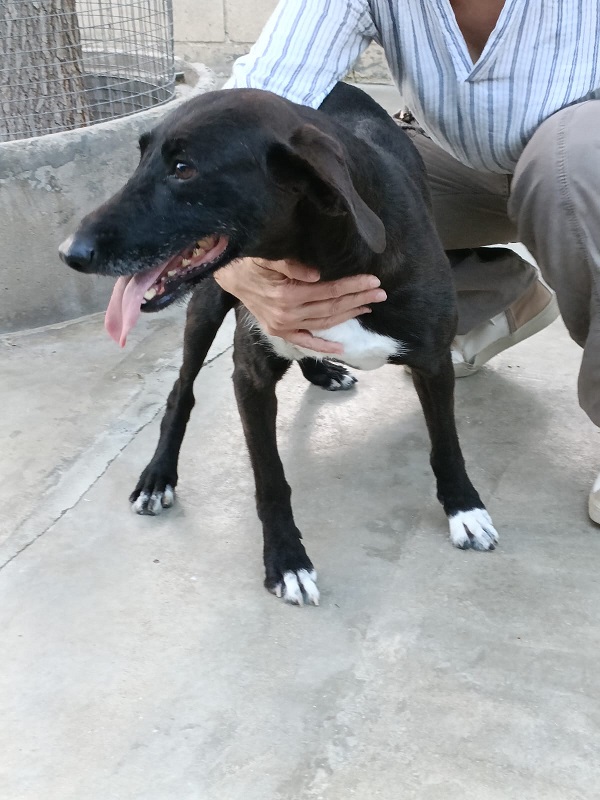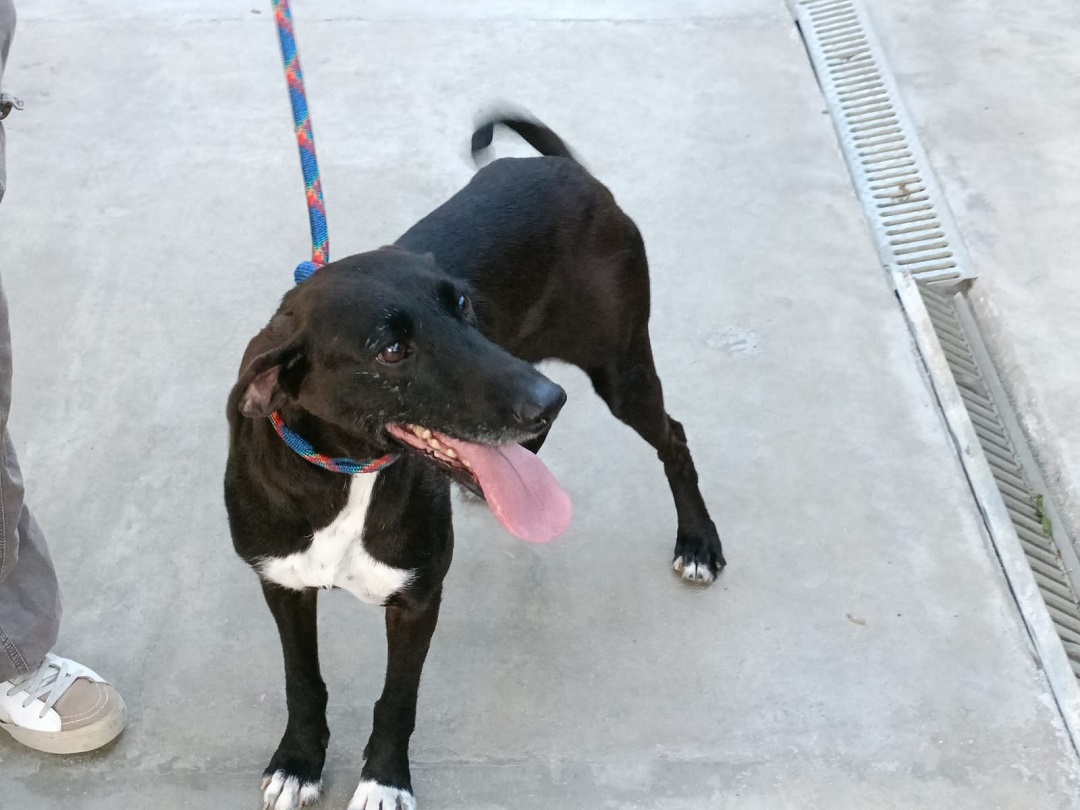 Muy alegre y cariñoso. Busca contacto y mimos constantemente. Procede de una colonia callejera. Viene al albergue por estar acatarrada, pero se queda por su buen caracter.